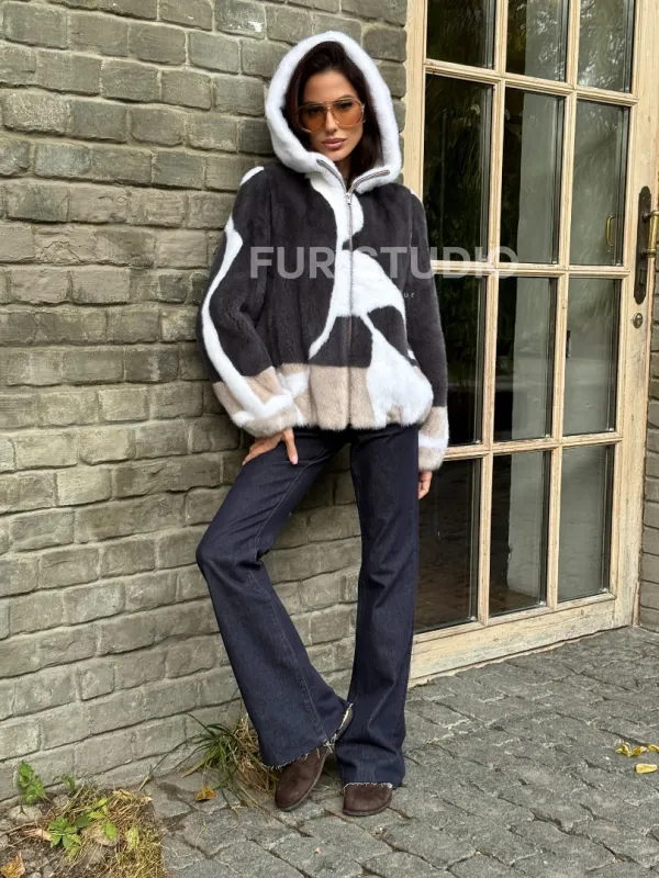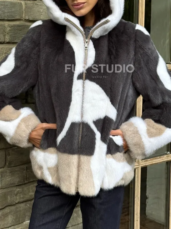 Норковая куртка с капюшоном 102334