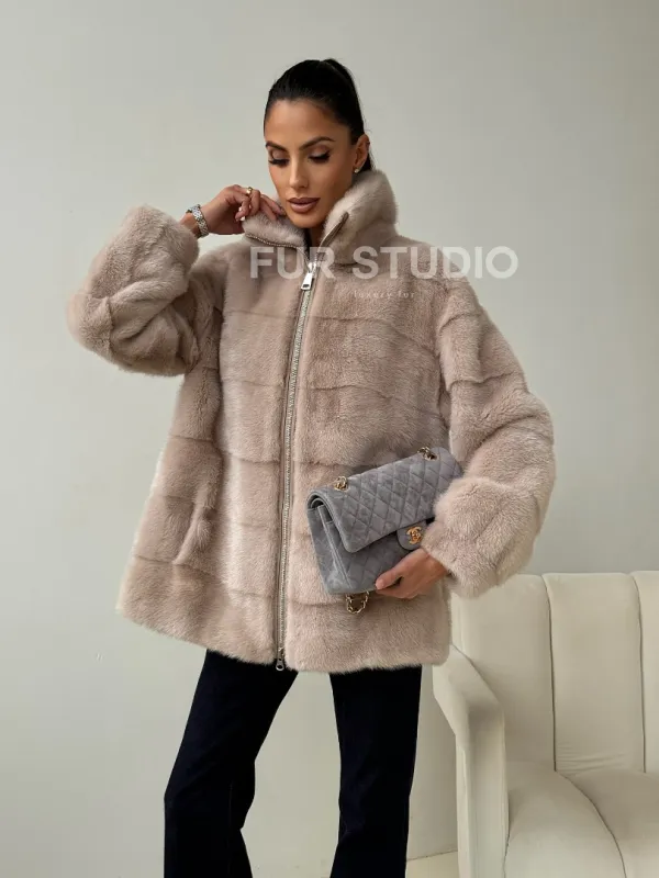 Норковая куртка стойка воротник 102455