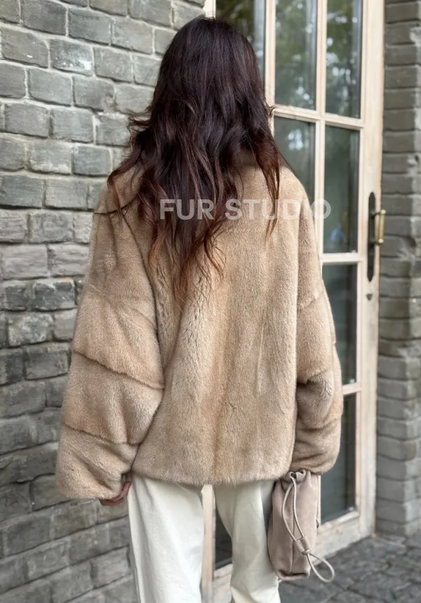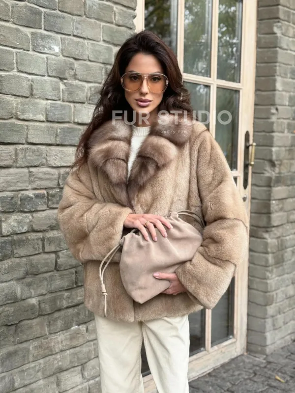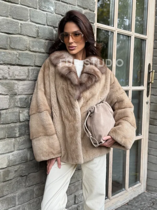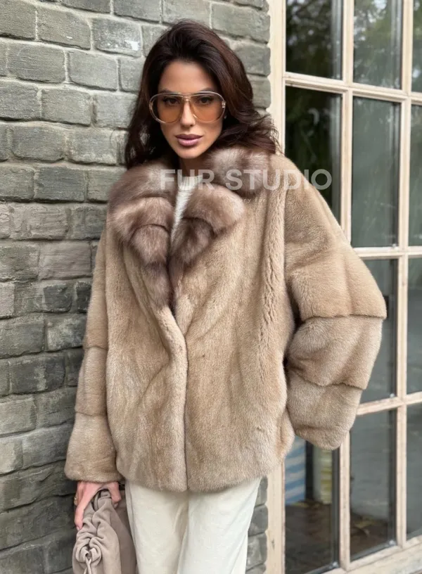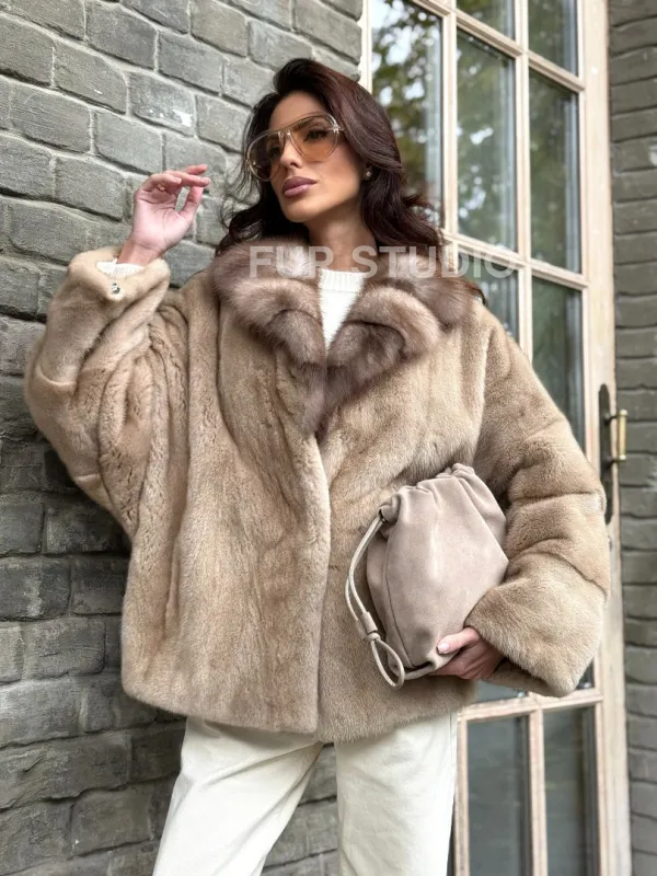 Норковый полушубок - автоледи с куницей 102361