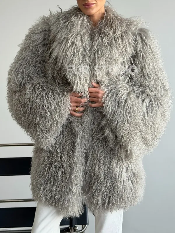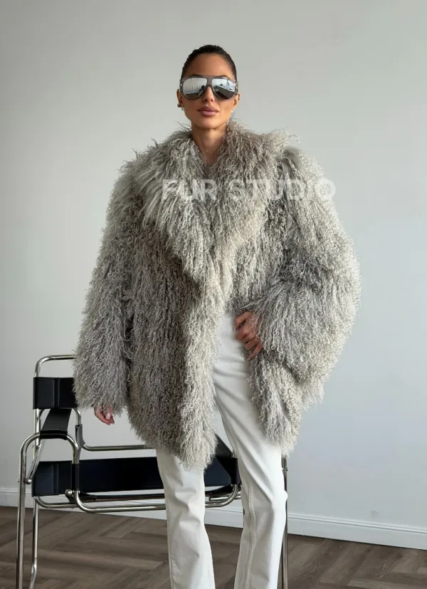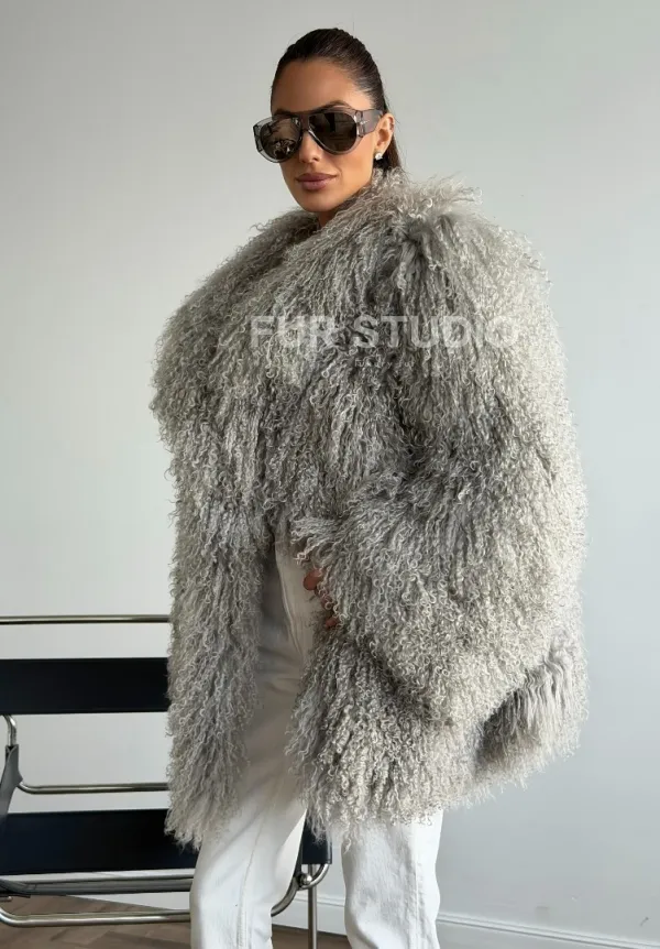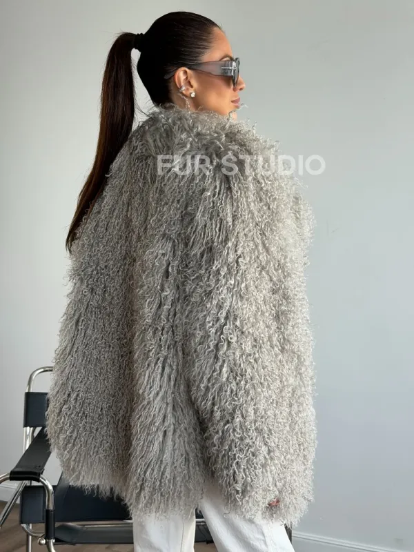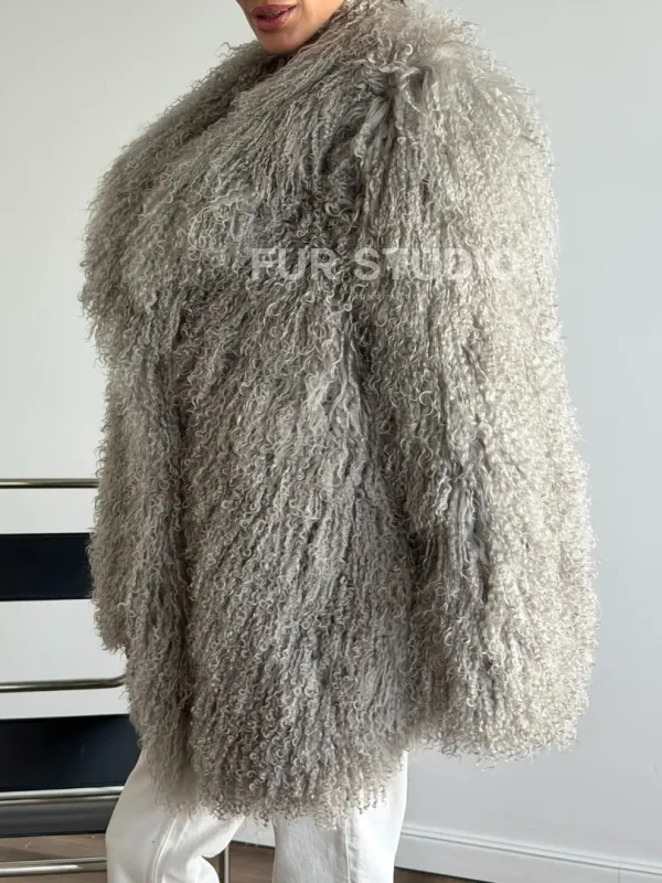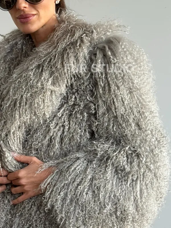 Серая шуба из ламы 102611