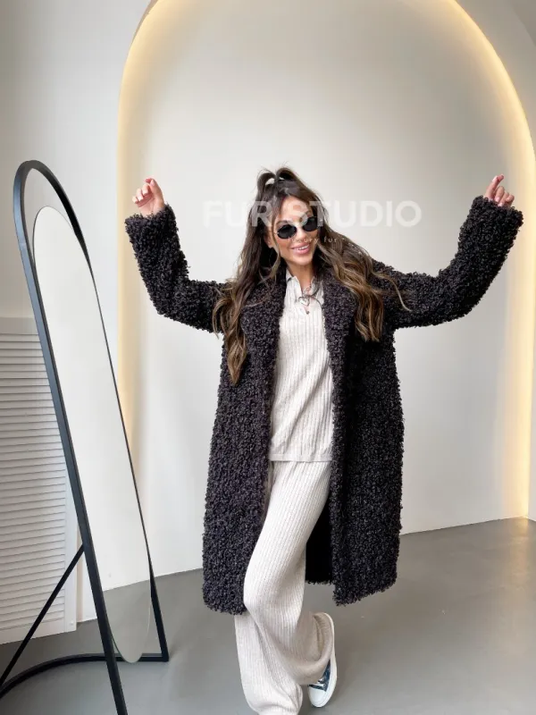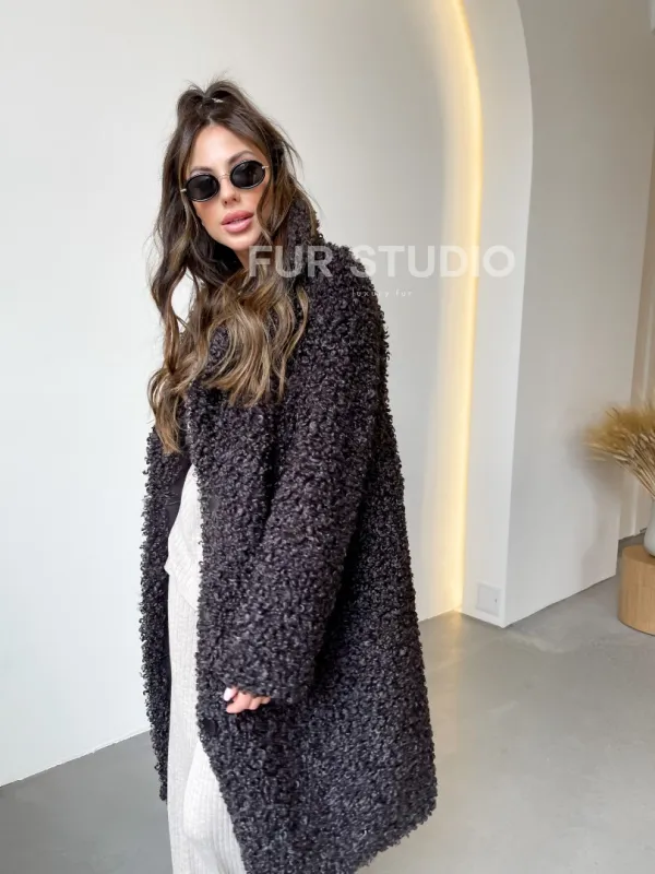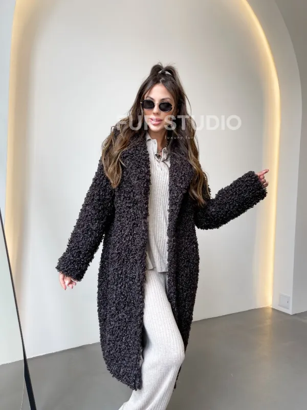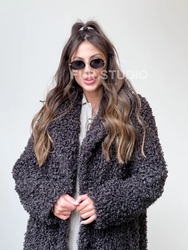 Шуба в цвете графит из экомеха 100251