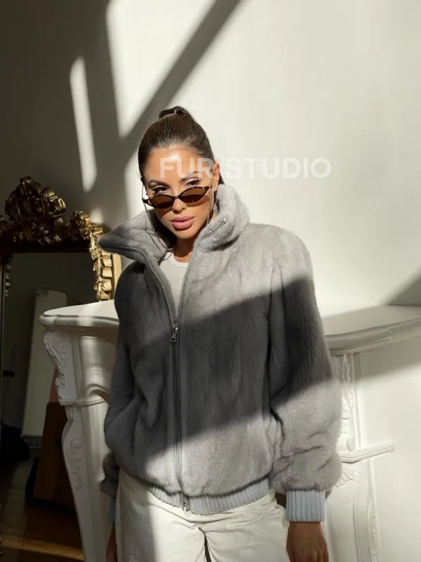 Светлая норковая куртка - бомбер 100220