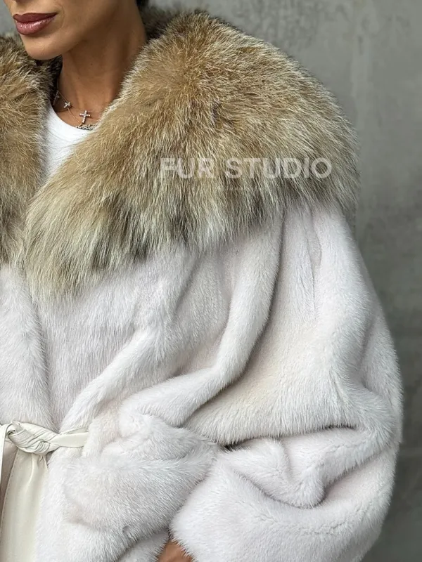 Светлая норковая шуба с капюшоном 102443